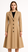 Este abrigo de lana para mujer combina la elegancia atemporal con una confección de inspiración sastrera. Su corte en línea A realza la cintura y crea una silueta femenina y sofisticada, mientras que los botones decorativos aportan un toque de lujo y distinción.
