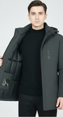 Elegancia sobria y protección absoluta. Este abrigo acolchado de corte clásico está diseñado para el hombre que busca una prenda de invierno que nunca pase de moda. Su estética limpia y minimalista, sin logotipos llamativos ni detalles innecesarios, lo convierte en la opción perfecta para llevar sobre un traje de oficina o para un look de fin de semana pulido.