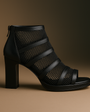 Dale un toque vanguardista y seductor a tu look con estas sandalias abotinadas de diseño exclusivo. Confeccionadas en tejido de rejilla (malla) transpirable de color negro, envuelven el pie con suavidad aportando frescura y un estilo "cage" muy actual.